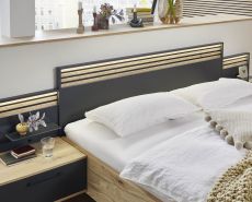 Der Trend? Massive Lamellen in dunkler Absetzung! Mit Cabrillo gehen Sie mit der Zeit. Die Bauchbinde, sowie die Paneelaufsätze und ein handwerkliches Holzkopfteil setzen auf Lamellen in Anthrazit. Das alternative Polsterkopfteil in Stoff Anthrazit lädt zum Anlehnen und Entspannen ein!
