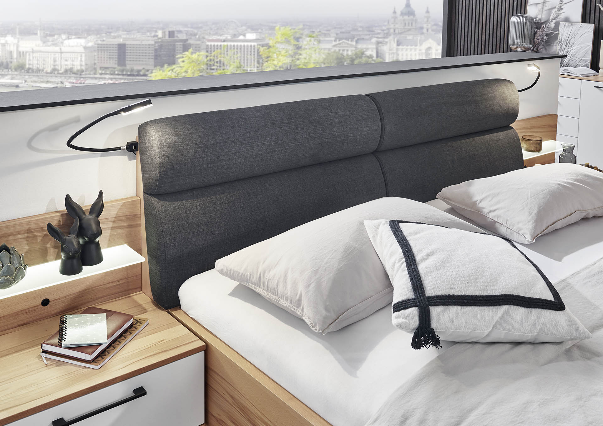 Sie können bei unseren Betten zwischen furnierten und lackierten Kopfteilen oder Polsterkopfteilen wählen.