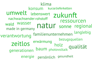 Holz ist ein nachwachsender Naturrohstoff, der viele ökologische Vorteile gegenüber anderen Materialien hat. Bei der Herstellung technischer Rohstoffe werden stets fossile Energieträger eingesetzt. Holz dagegen wird ausschließlich mit Sonnenenergie produziert. Dabei entzieht es der Atmosphäre während des Wachstums das schädliche Treibhausgas Kohlendioxid (CO2), das als Kohlenstoff (C) in Holzprodukten über die gesamte Nutzungsdauer unschädlich gebunden bleibt.