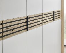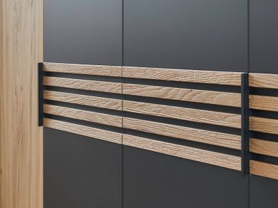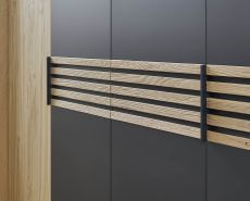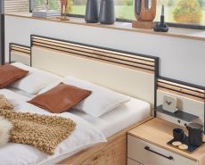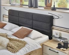 Der Trend? Massive Lamellen in dunkler Absetzung! Mit Cabrillo gehen Sie mit der Zeit. Die Bauchbinde, sowie die Paneelaufsätze und ein handwerkliches Holzkopfteil setzen auf Lamellen in Anthrazit. Das alternative Polsterkopfteil in Stoff Anthrazit lädt zum Anlehnen und Entspannen ein!